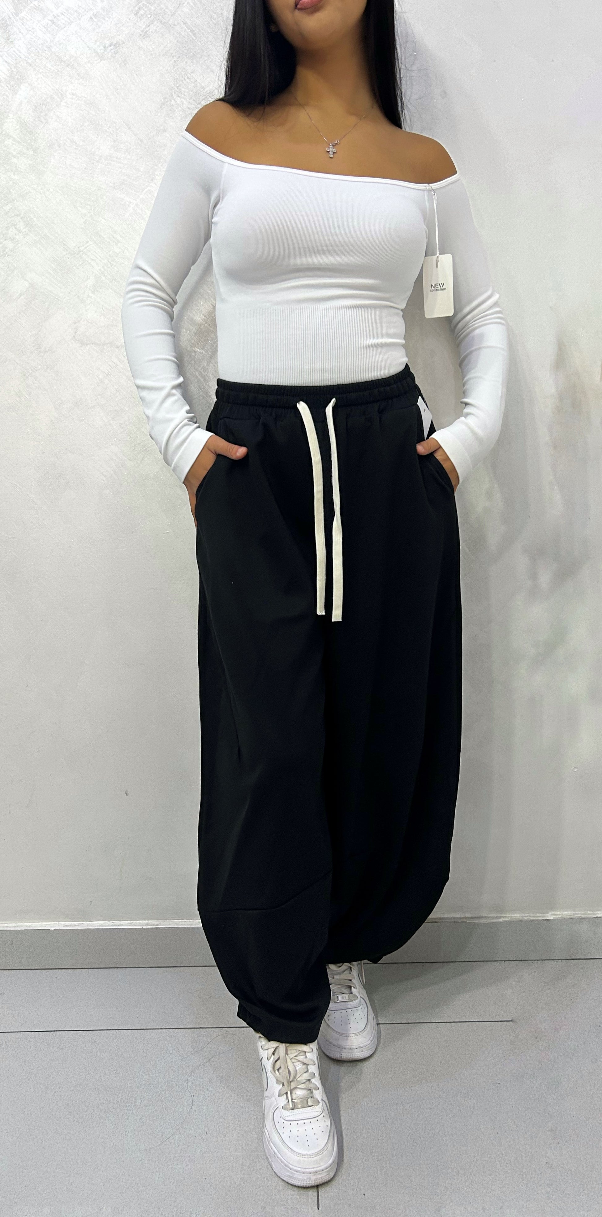 Pantalone di tuta modello balloon, con gamba ampia e fondo elasticizzato. Realizzato in tessuto morbido e confortevole, garantisce libertà di movimento e uno stile moderno.